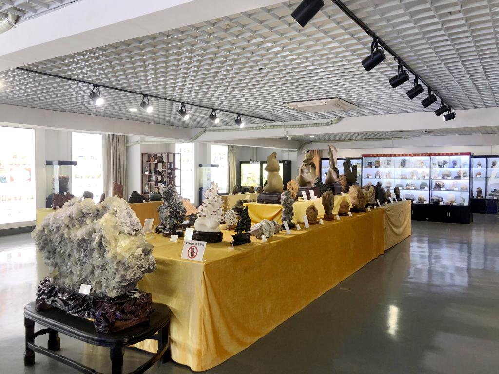 赣南医学院美育科普教育基地——石文化展示馆于2020年6月建成开馆,建设面积219平方米,观赏石藏品500余方,包括国内外岩石类、矿物晶体类和化石类三大类。展示馆通过灯光展板、视频音乐播放和实物展陈的方式,着重介绍中华五千年的赏石文化、中国古代四大名石、观赏石的分类和赣州主要石种,并展示“中国恐龙之乡——赣州”的风采。同时结合医学院校的办学特色和独特的地方红色文化,设立了赏石与医药、赏石与红色文化专柜。展示馆集石头艺术作品展示、石头文化科普、学生素质拓展等于一体,展出的图片及实物与优秀传统文化、红色文化紧密结合,从科学、文学、艺术、医学和美学等多个角度展示了中华博大精深的赏石文化,以及石文化中寓含的医学之美与红色故事。学生从中能够潜移默化地得到美育和传统文化熏陶,拓宽知识视野,传承红色基因,提升发现美、欣赏美、创造美的能力,增强自身的思想素质和人文素养。
