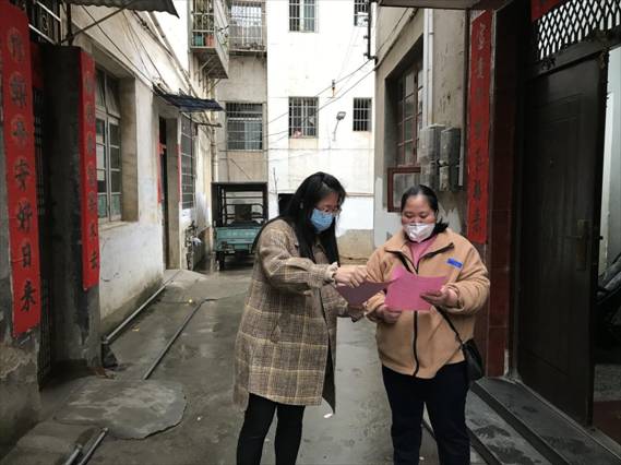 3、学生党员、16级医事法学专业邓文茜,看到社区招募志愿者,觉得可以做些什么。在社区,她为社区居民进行防控措施和注意事项的入户宣传,协助排查登记、消杀卫生死角,凌晨1点与社区工作人员对接从武汉返程人员。