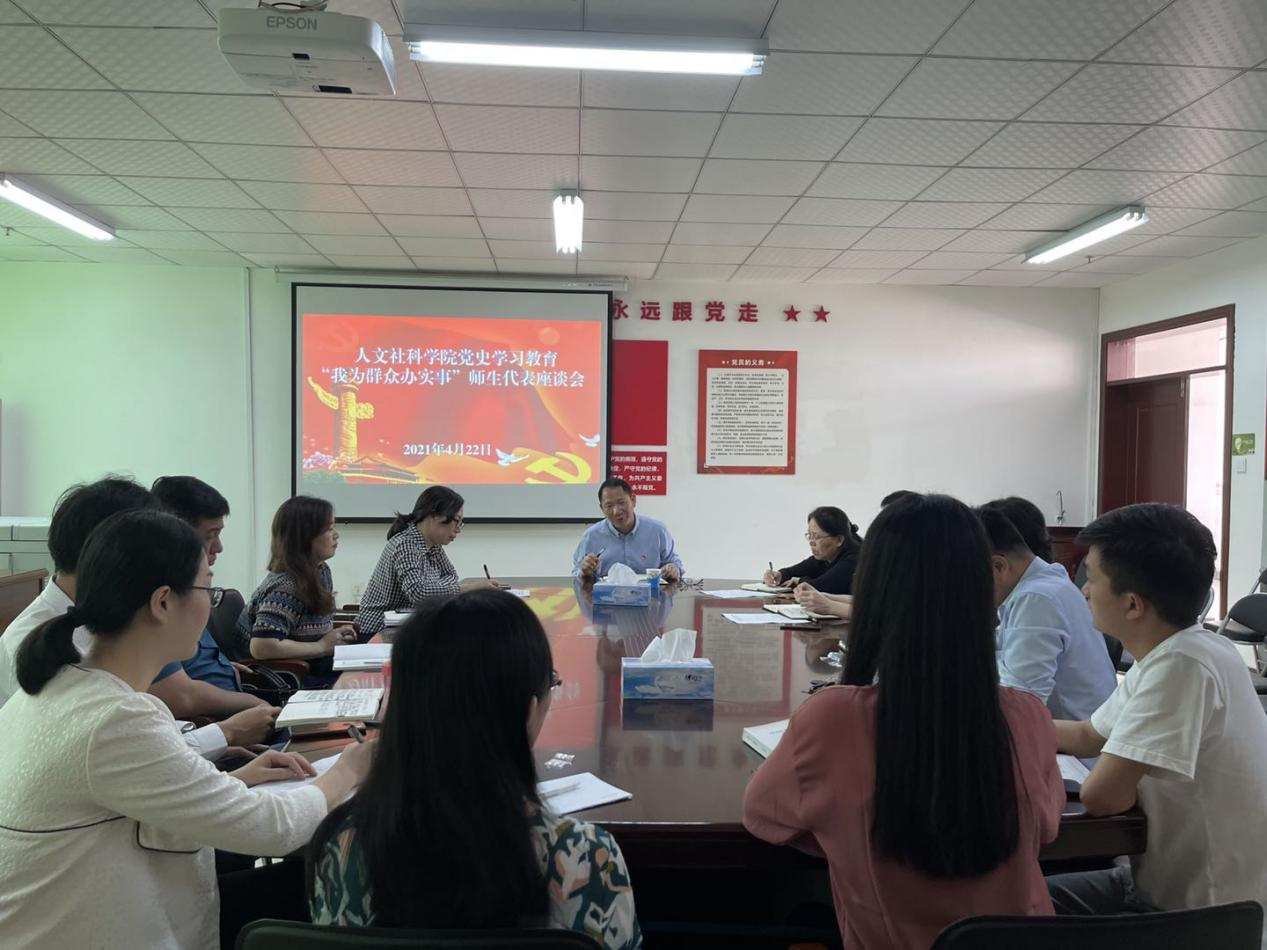 为推动党史学习教育走深走实,将党史学习与为师生服务相结合、着力为师生办实事、解难题,4月22日下午,人文社科学院召开“我为群众办实事”座谈会。学院党委委员、副校长黄瑞忠、该院党政领导,师生代表参会。