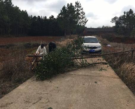 四、当“搬运工”:2020年2月1日,我自告奋勇当志愿者帮忙搬运树木,协助其他村民进行封村,劝阻外来人员进入本村。