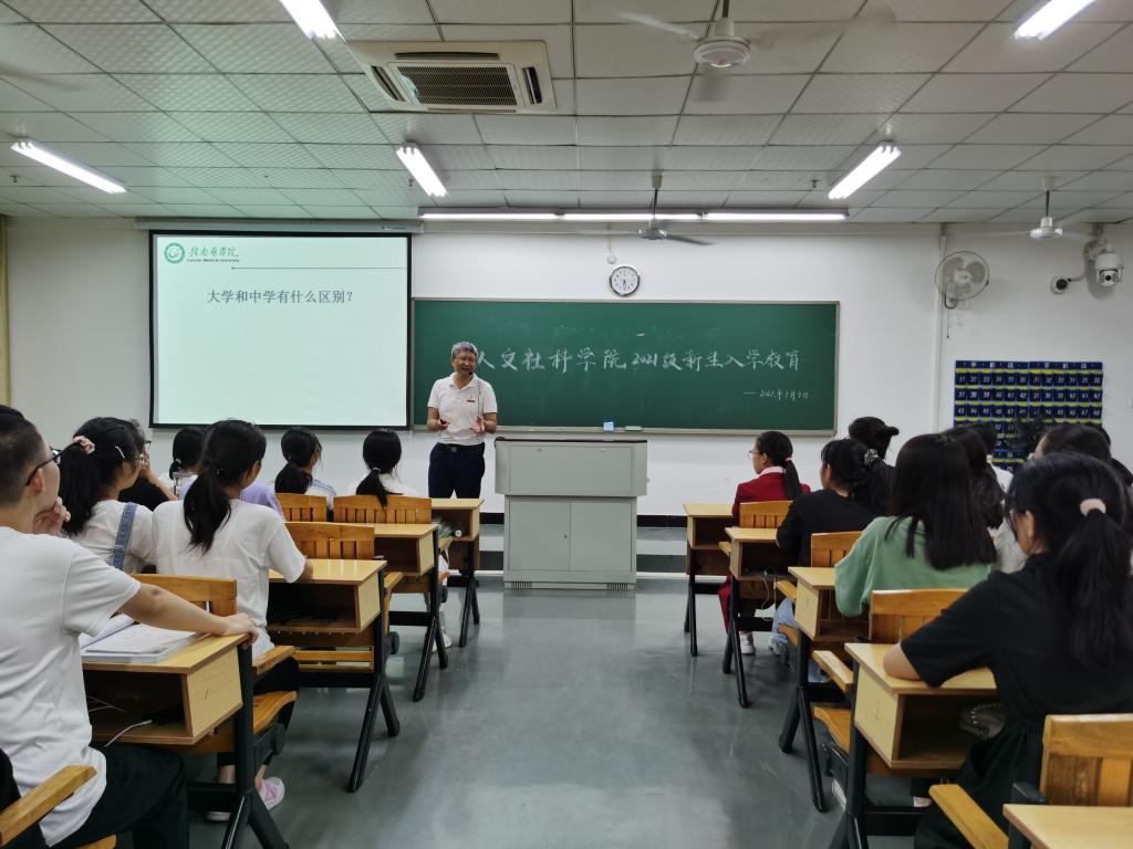 9月9日晚,人文社科学院党委副书记、院长赖日勇为新生作了题为《如何成为更优秀的自己》入学教育专题讲座。