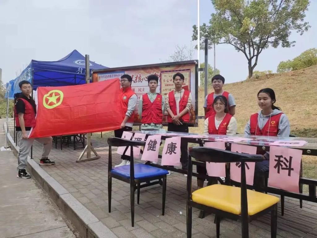 除此之外,人文社科学院志愿者服务队在黄金校区食堂门口开展“心理健康沐春风,雷锋精神我传承”心理健康知识科普公益活动,不仅为来往学生发放心理健康宣传手册,还现场解答学生心理咨询。将雷锋精神与心理专业知识结合起来,切实服务同学,弘扬雷锋精神。