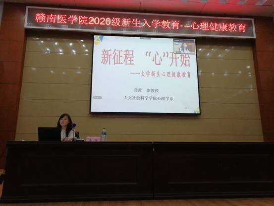 9月23日晚,心理学教研室教师龚茜于黄金校区行政楼学术报告厅为我校2020级新生开展了主题为《新征程·“心”开始》的心理健康教育讲座。