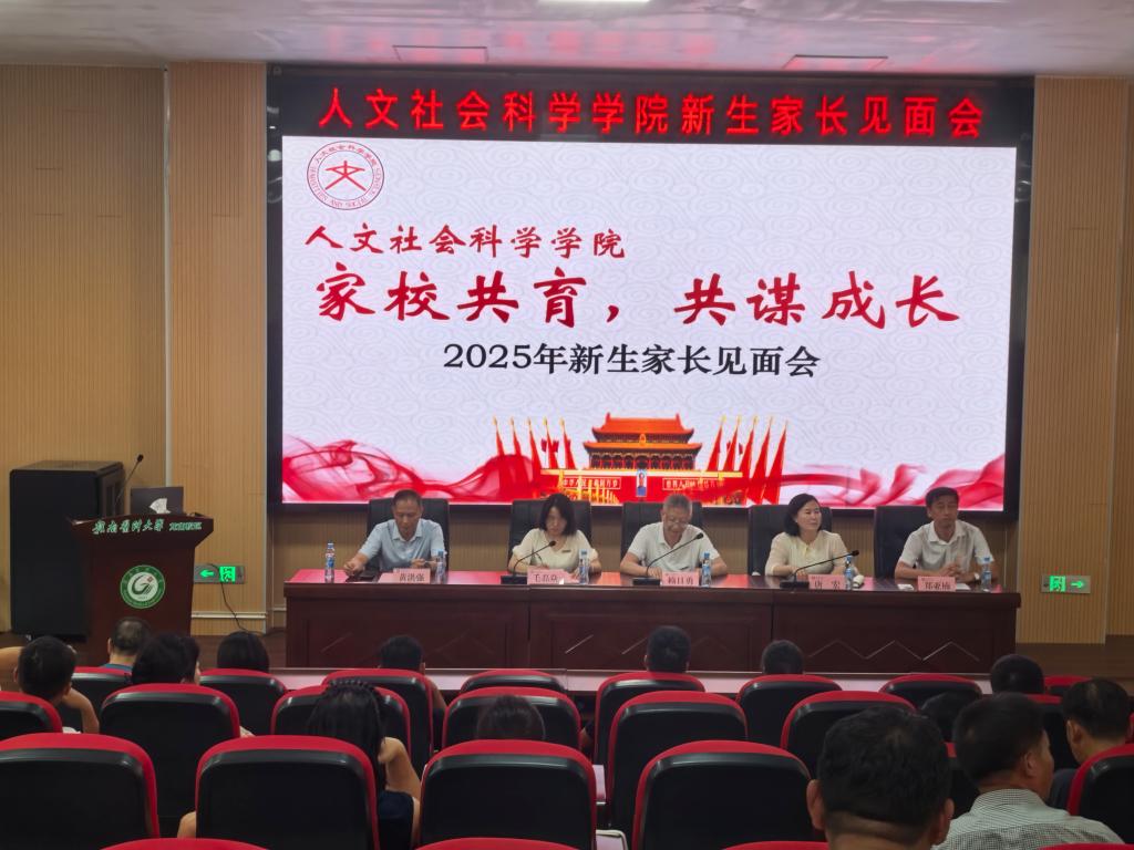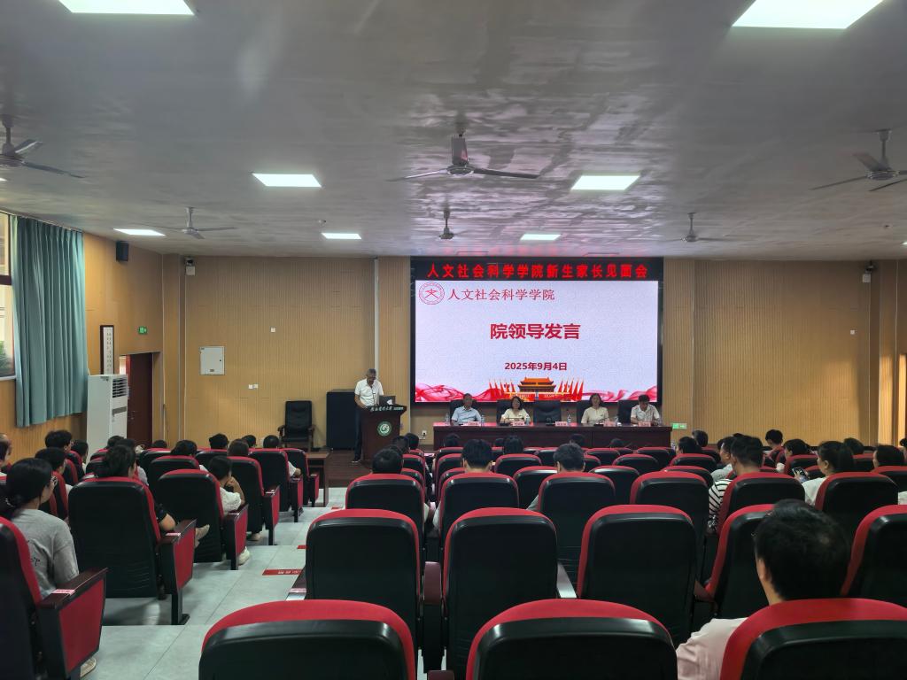 9月4日下午,赣南医科大学人文社会科学学院在龙南校区隆重举行2025级新生家长见面会。见面会以“家校共育·共谋成长”为主题,旨在加强家校沟通,帮助新生家长全面了解学院概况、专业建设及学生培养体系,共同助力新生快速适应大学生活、成长成才。学院党政领导、专业负责人、学工办老师、班主任及150余名新生家长参加了会议。会议由学院党委副书记毛磊焱主持。